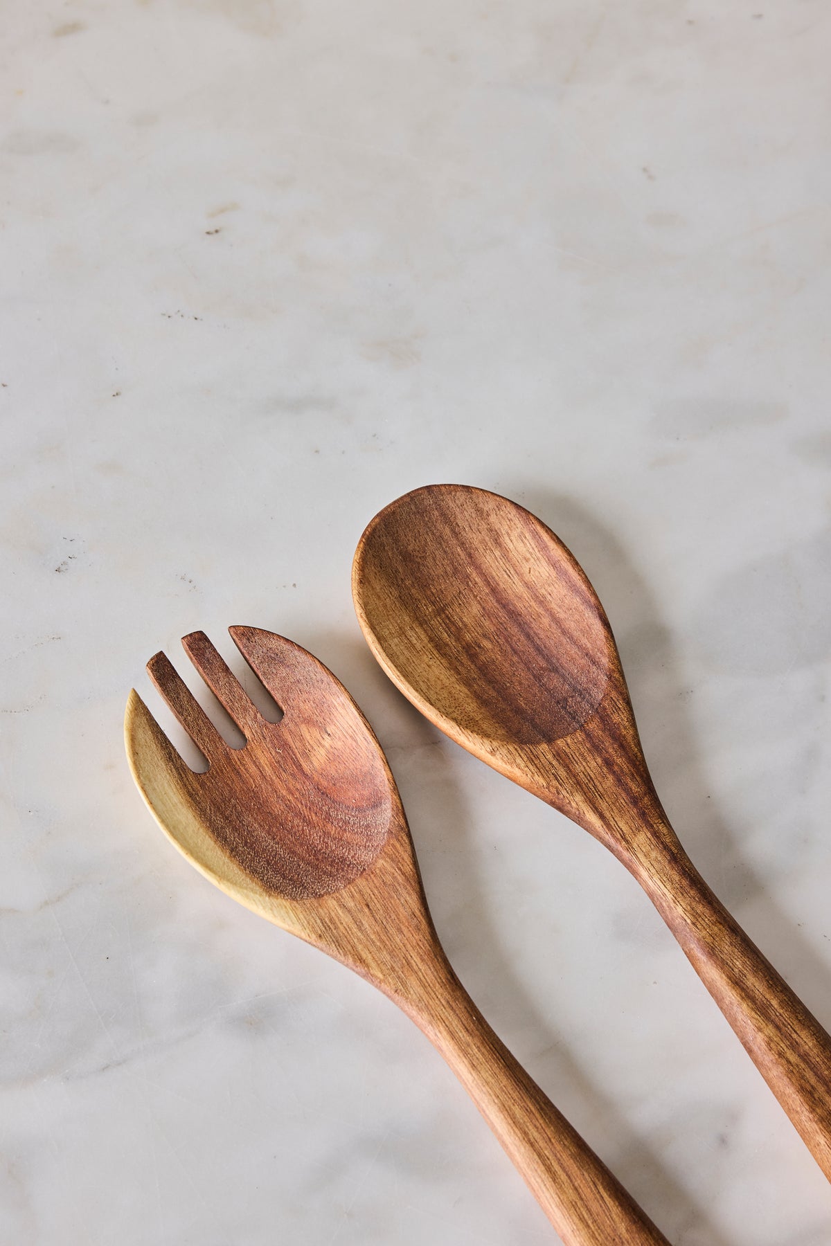 Un toque natural y elegante en tu mesa. Estos cubiertos de madera de acacia de 26 cm son resistentes, livianos y fáciles de usar, ideales para servir ensaladas o platos compartidos.