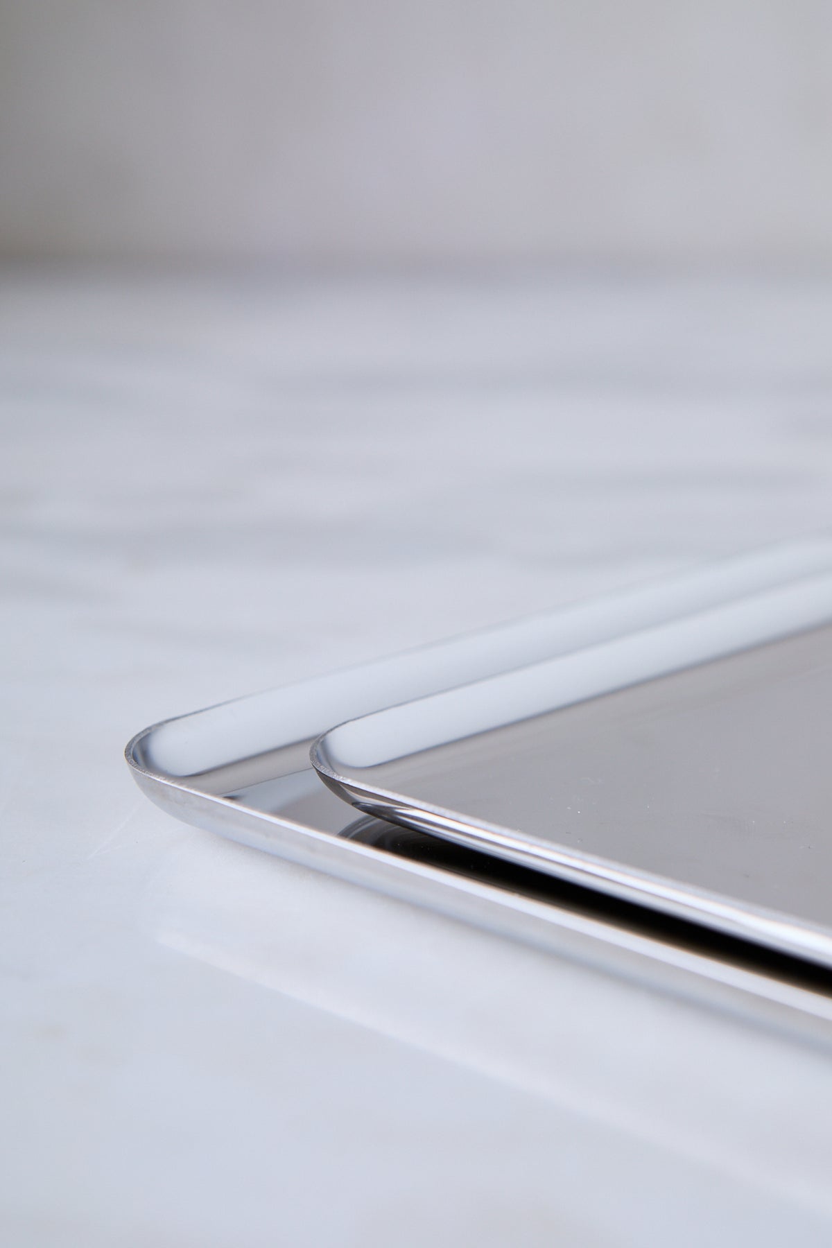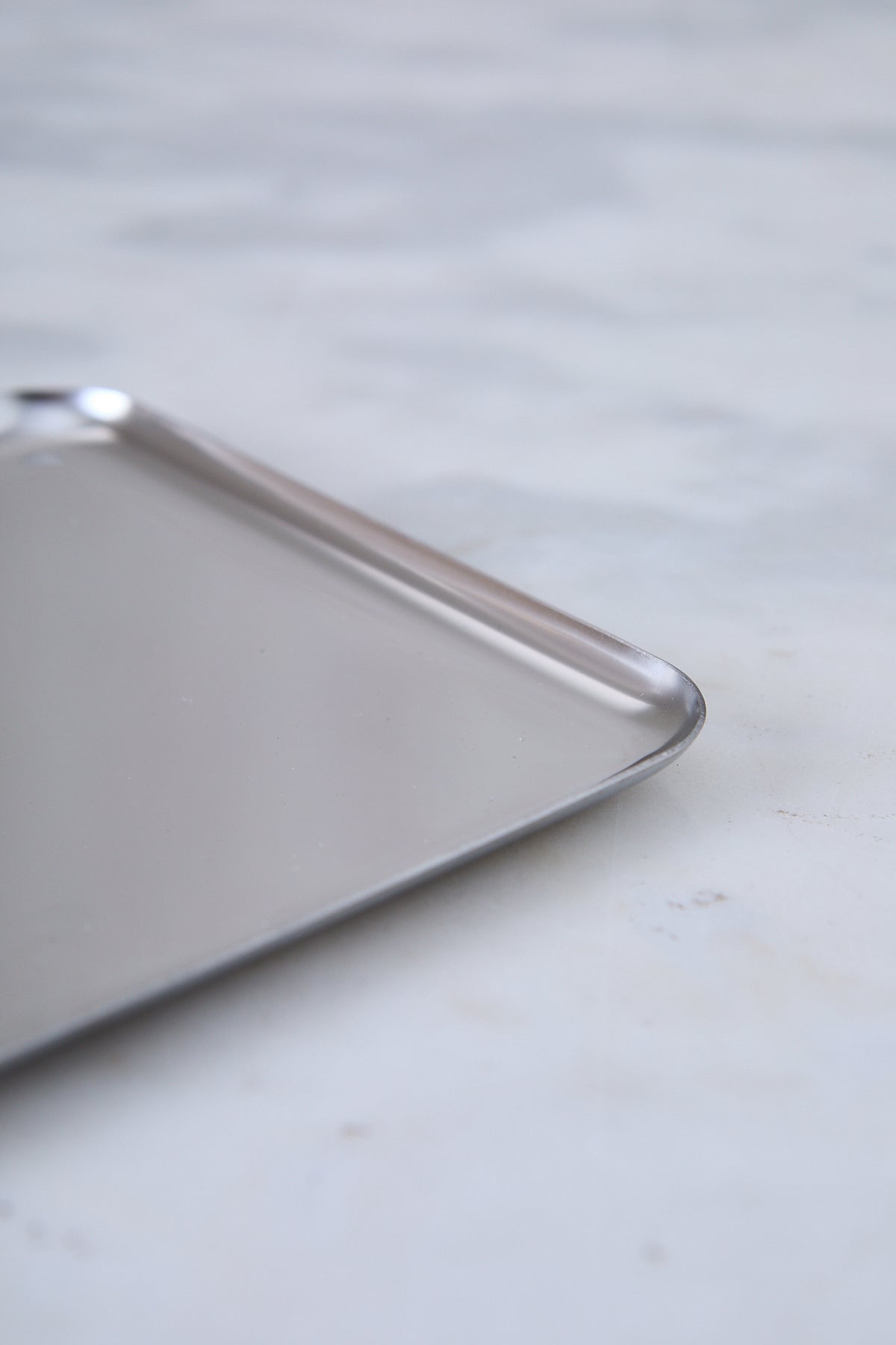 Esta bandeja cuadrada de acero espejado es un detalle chico pero muy protagonista. Su tamaño compacto la hace ideal para usar como base de velas, difusores, jabones o accesorios en el baño, la mesa de luz o el escritorio, ordenando y decorando al mismo tiempo.
