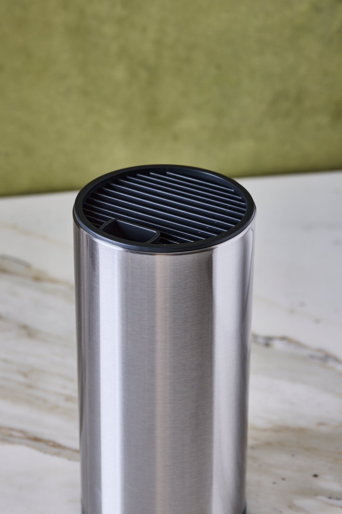 Un accesorio indispensable para mantener tus cuchillos organizados y seguros. Fabricado en acero inoxidable, este porta cuchillos combina resistencia, durabilidad y un diseño moderno y minimalista que se adapta a cualquier cocina.