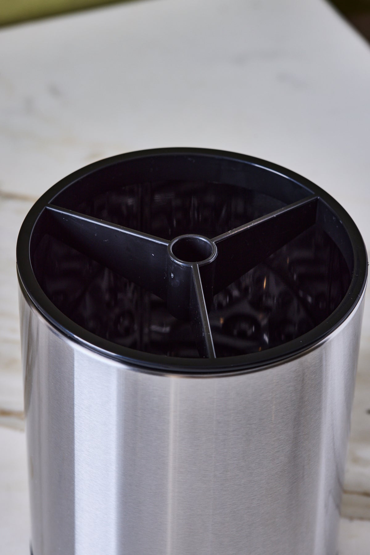 El sistema giratorio brinda un acceso rápido y cómodo con solo un movimiento, mientras que su estructura en acero inoxidable asegura resistencia, durabilidad e higiene. Además, cuenta con un escurridor interno que permite eliminar el exceso de agua y una base ventilada que favorece la circulación del aire, evitando la acumulación de humedad y cuidando tus utensilios.