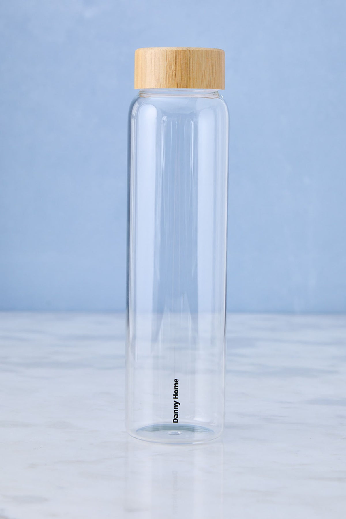 Sencilla, ecológica y práctica. Esta botella de vidrio con tapa de bambú es perfecta para conservar agua y bebidas con frescura. Su diseño minimalista y reutilizable la convierte en una opción sustentable y elegante para el hogar o la oficina.