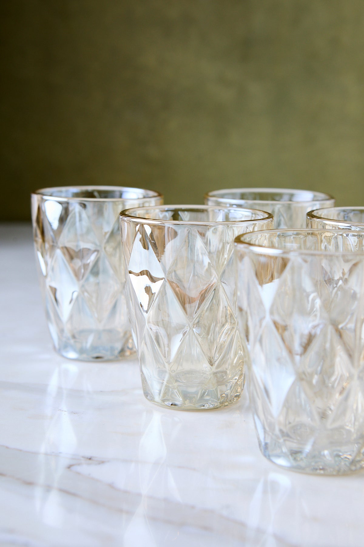 El vaso bajo Diamante Champagne de 250 ml es perfecto para quienes buscan una mesa moderna con un toque de glamour. Su relieve tipo diamante aporta textura y elegancia, ideal para tragos cortos, aperitivos y bebidas sin alcohol.