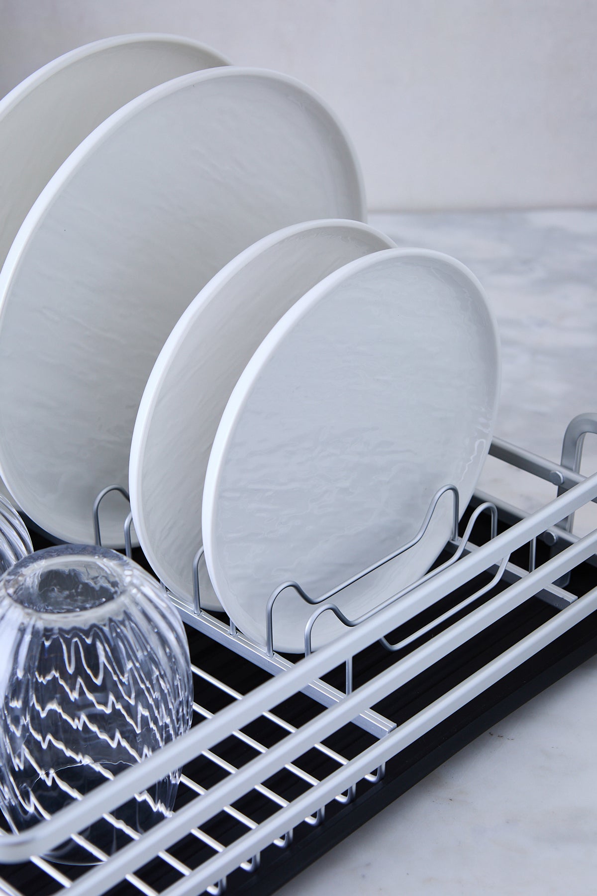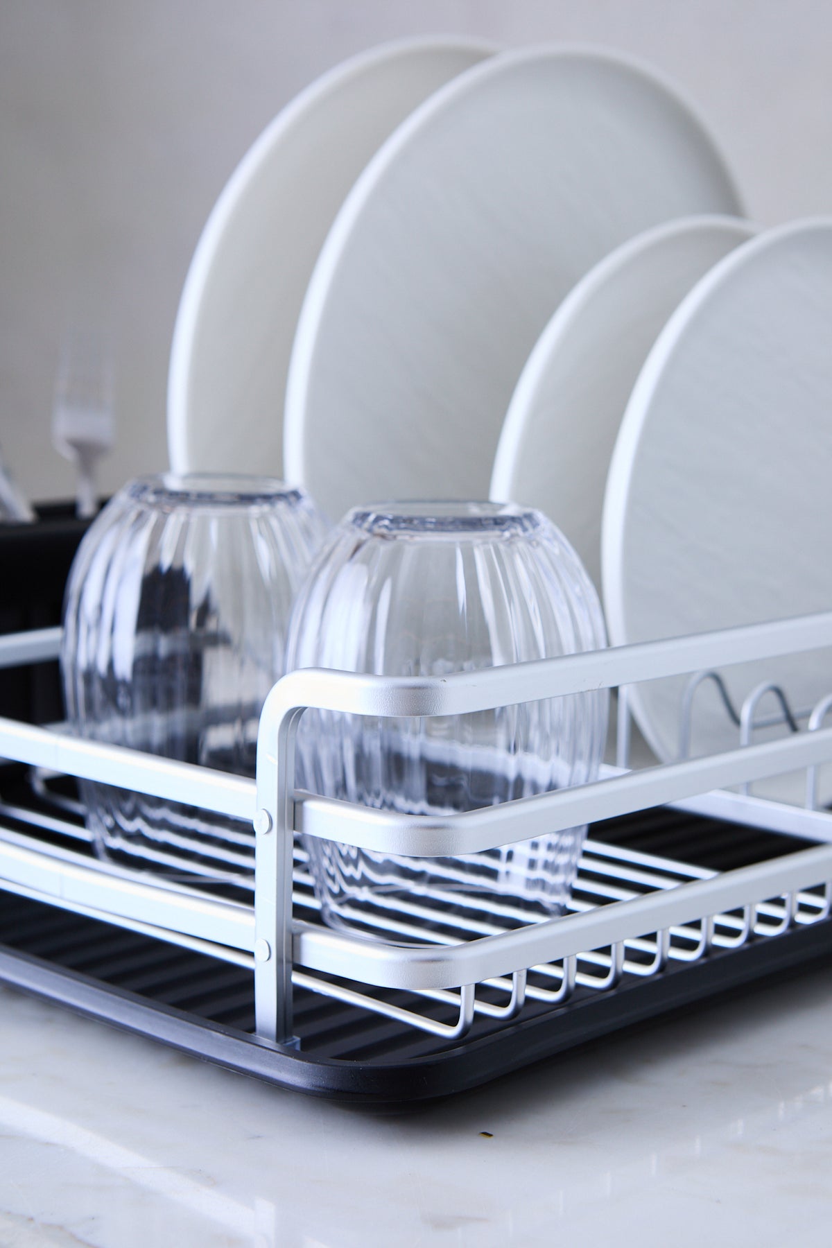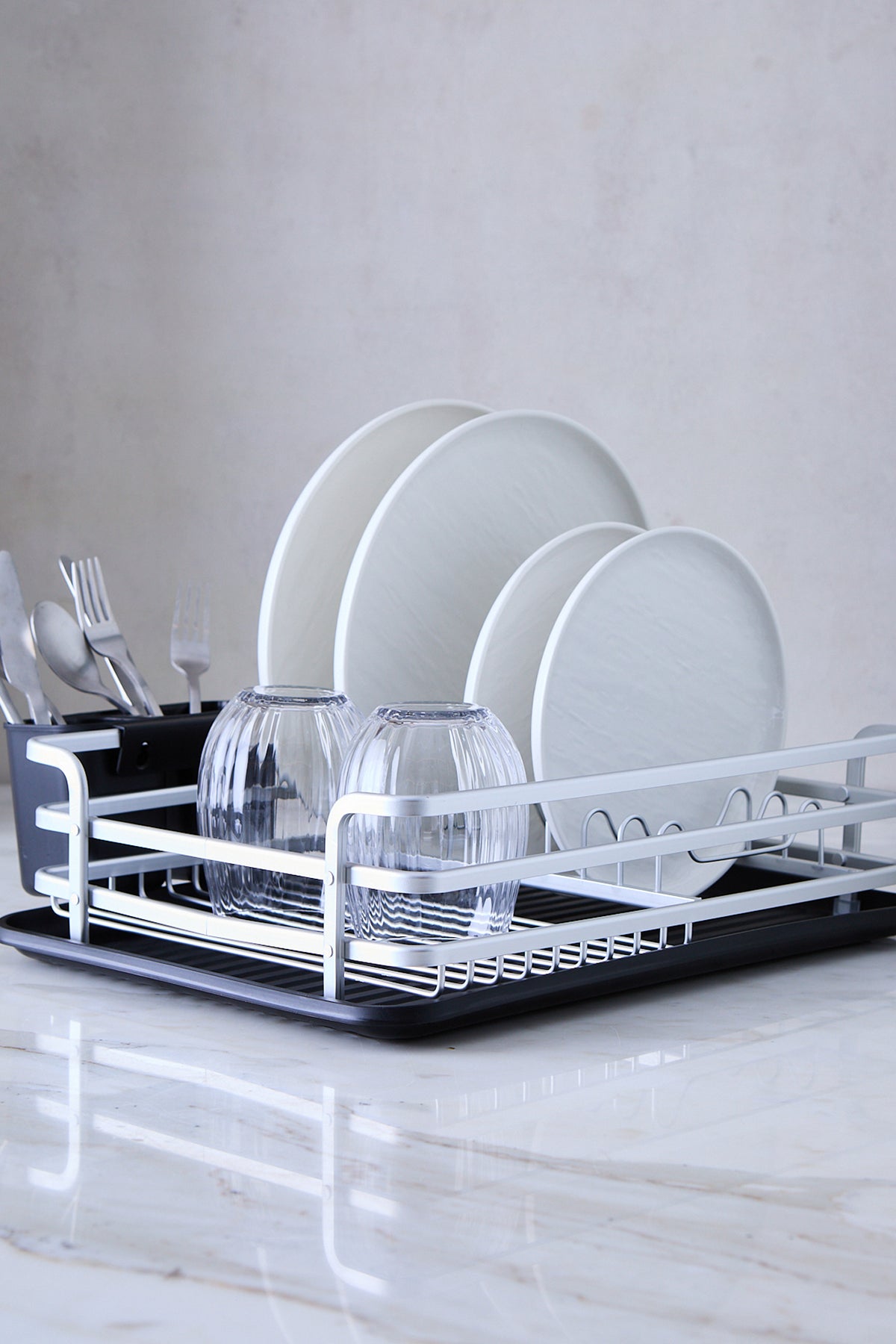 Cuenta con cups de silicona antideslizantes que se adhieren mejor a la superficie, evitando que el escurridor se deslice cuando está cargado. Es perfecto para el uso diario, manteniendo platos y vasos organizados sin perder estilo. Un aliado básico y estético para actualizar tu cocina o equipar tu primer hogar.