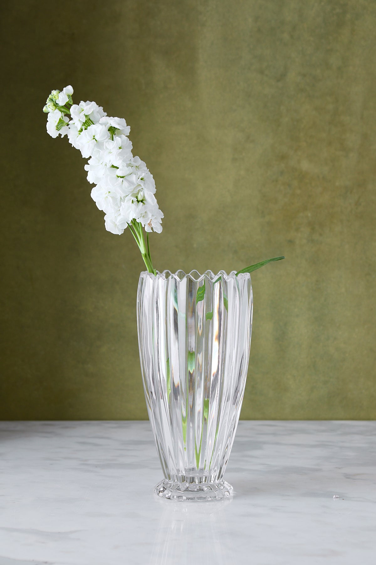 El jarrón de vidrio Triumph es una pieza decorativa elegante y versátil. Su diseño con relieve vertical y acabado transparente realza la forma natural de las flores, aportando luminosidad y movimiento visual al ambiente.