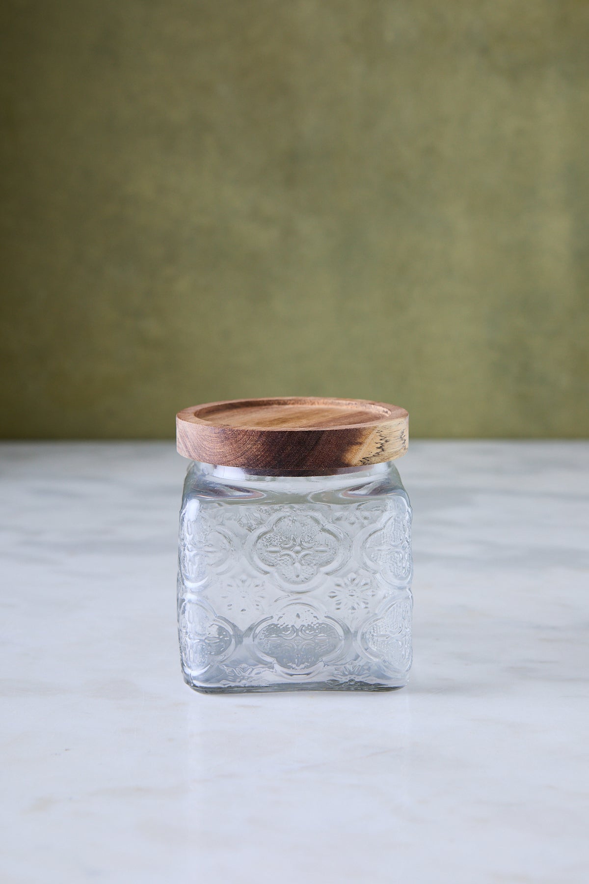 El frasco de vidrio transparente con tapa de acacia 500 ml es ideal para porciones más pequeñas: semillas, condimentos, té a granel, mix de frutos secos o azúcar para el café. Su tamaño compacto permite agrupar varios frascos juntos y armar una estación de desayuno o café súper prolija.