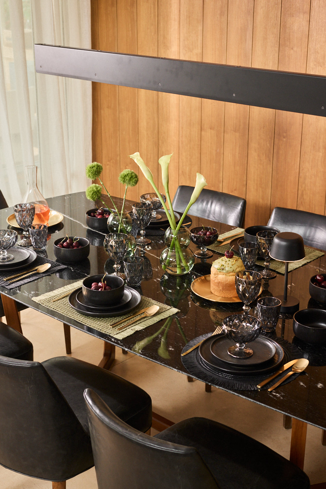 Con un diseño audaz y contemporáneo, este set en tono negro es ideal para quienes desean darle personalidad y modernidad a su mesa. Incluye piezas completas para 4 comensales, resistentes y fáciles de combinar con distintos estilos de mantelería y decoración. Perfecto para cenas con amigos o para sorprender en ocasiones especiales.