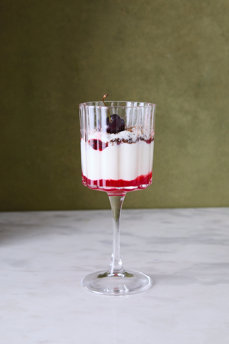Las copas de vidrio transparente de 400 ml son perfectas para espumantes, vino blanco, cocktails ligeros y también para presentar postres individuales como mousses, tiramisú o frutas con crema. Su diseño alto y delicado da sensación de ligereza y viste la mesa con un toque clásico y atemporal.