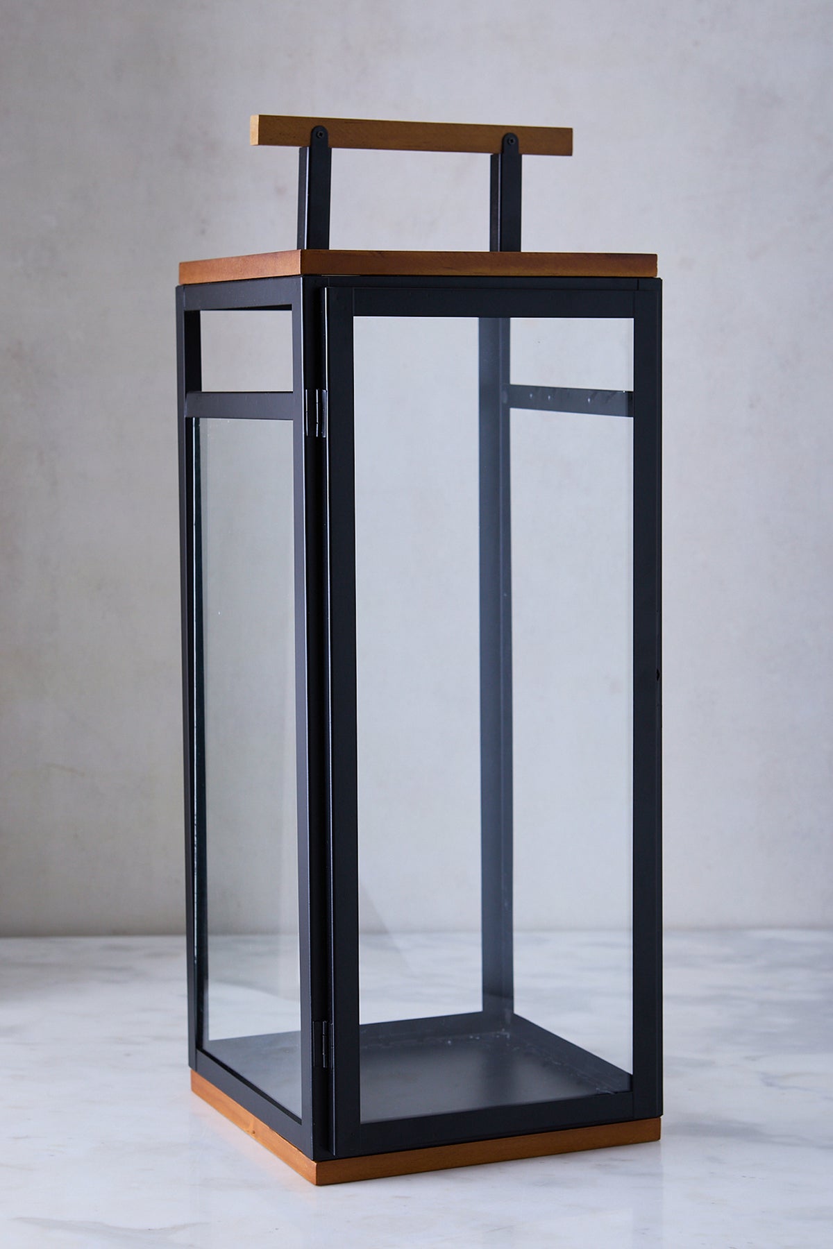 El fanal Brickell de 59 cm es una pieza de impacto para decorar interiores y galerías. Su diseño alto y estilizado, con estructura de hierro y detalles en madera, aporta un aire sofisticado y moderno que luce increíble en livings amplios, recibidores o al lado de una chimenea.