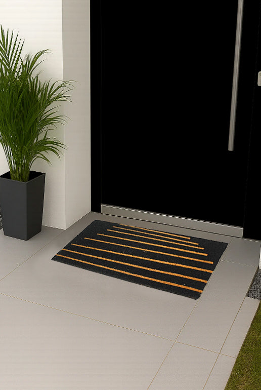 Minimalista y sofisticado, este felpudo combina el negro intenso con líneas, logrando un estilo moderno y funcional. Gracias a la fibra de coco, ofrece gran durabilidad y eficacia al retener la suciedad antes de ingresar al hogar.