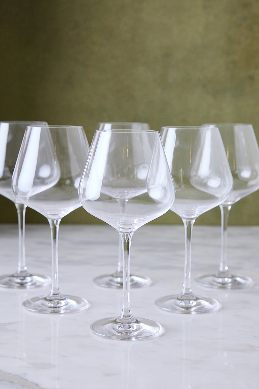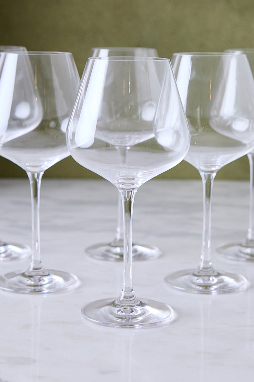 El set x6 copas de vidrio es ideal para quienes buscan una copa amplia y protagonista para vino tinto, gin tonic o cócteles especiales. Su gran capacidad permite disfrutar mejor los aromas y sumar un toque sofisticado a cenas formales o reuniones con amigos. El vidrio transparente aporta ligereza visual y se adapta con facilidad a vajilla moderna, platos de cerámica artesanal y textiles de mesa en tonos neutros.