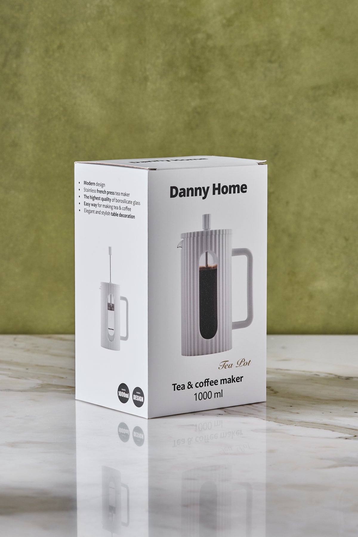 Material: Vidrio de borosilicato con recubrimiento PP texturado y filtro de acero inoxidable