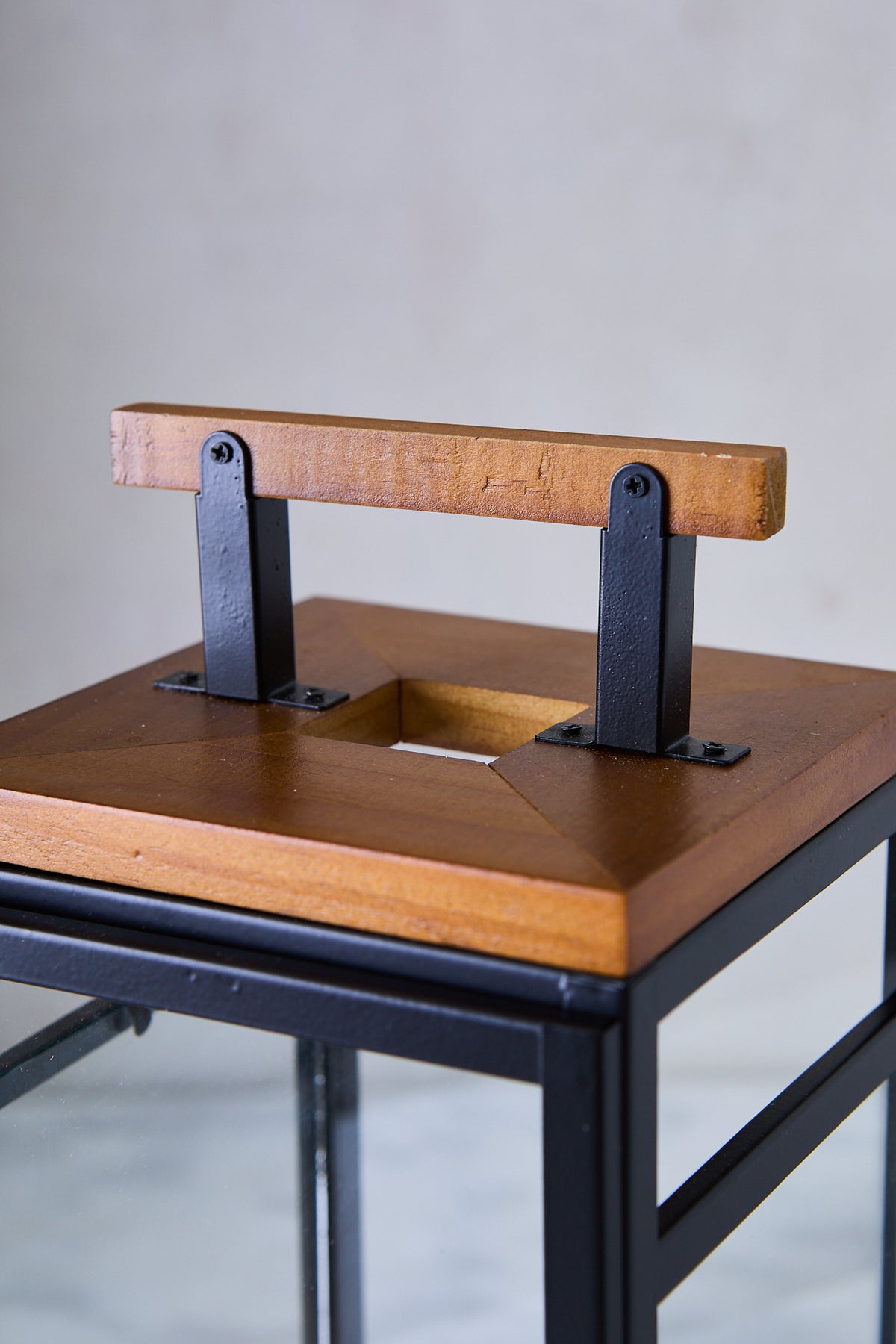 Material: Madera, vidrio & hierro