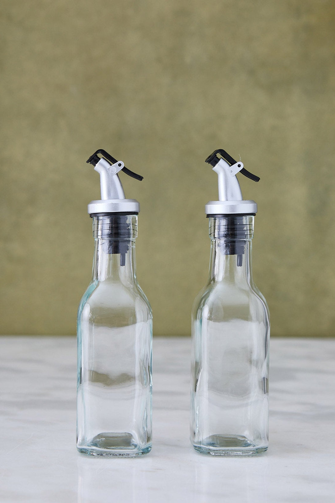 Este set de 2 aceiteras cuadradas de vidrio de 150 ml cada una es perfecto para la mesa o la cocina. Compactas, resistentes y de diseño elegante, son ideales para presentar aceites, vinagres o salsas con practicidad y buen gusto.