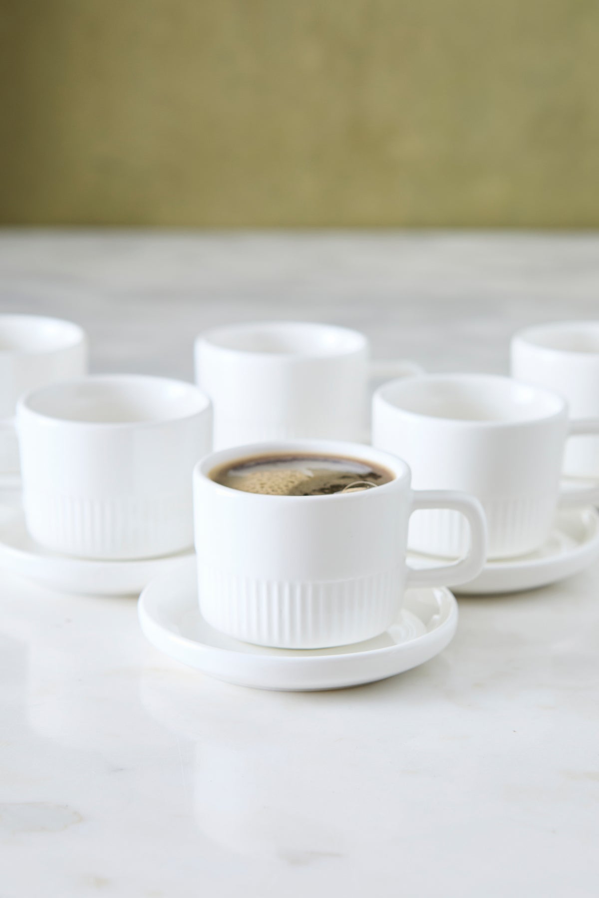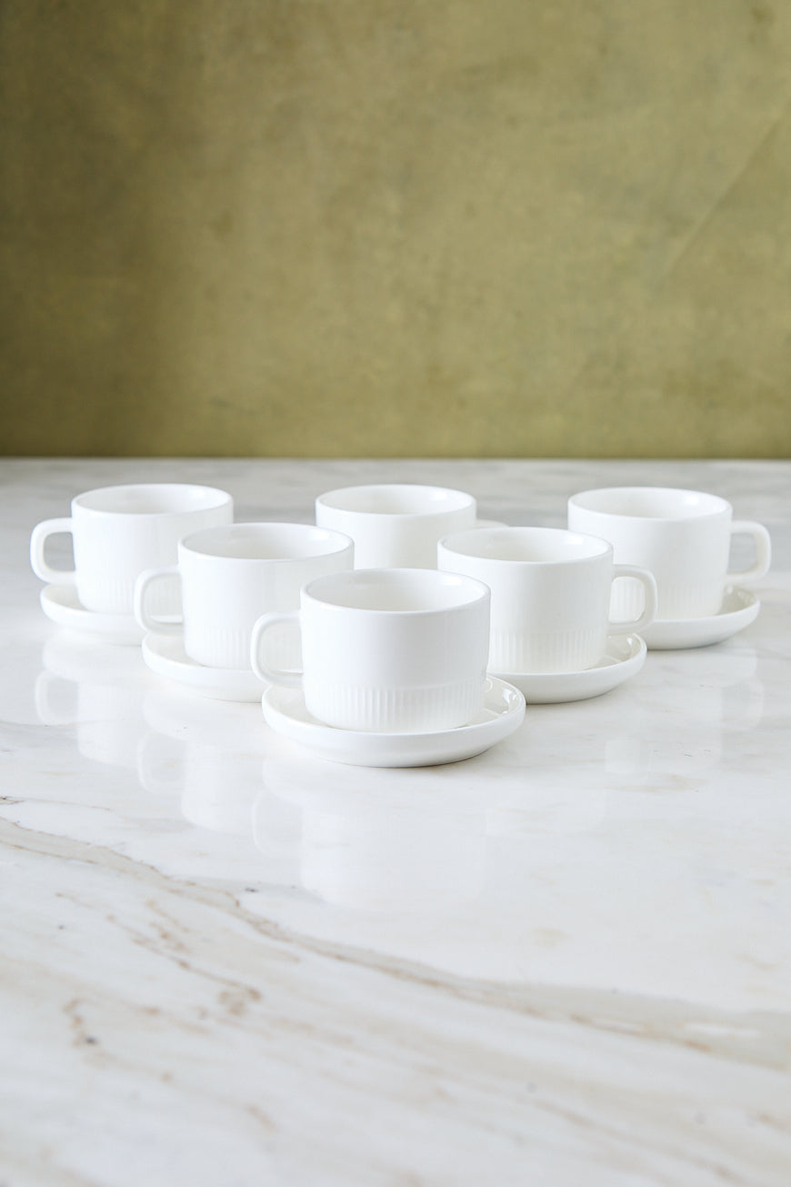 Este set x 6 tazas es perfecto para café espresso, cortado o degustación. Su tamaño pequeño y diseño simple aportan una sensación de orden y sofisticación, ideal para bandejas de desayuno, máquinas de café y reuniones después de comer.