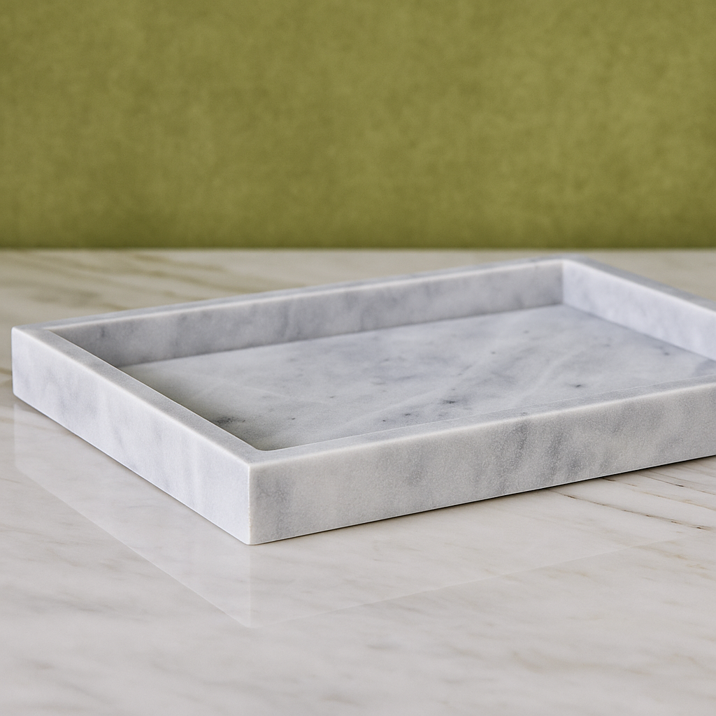 Elegante bandeja de mármol blanco de 30 cm, perfecta para presentar quesos, fiambres, postres o aperitivos con estilo. Su material natural aporta sofisticación y resistencia, además de ser ideal como base decorativa para velas, perfumes o accesorios en distintos ambientes del hogar. Un complemento versátil que combina funcionalidad y diseño, convirtiéndose en protagonista en la mesa o en la decoración.