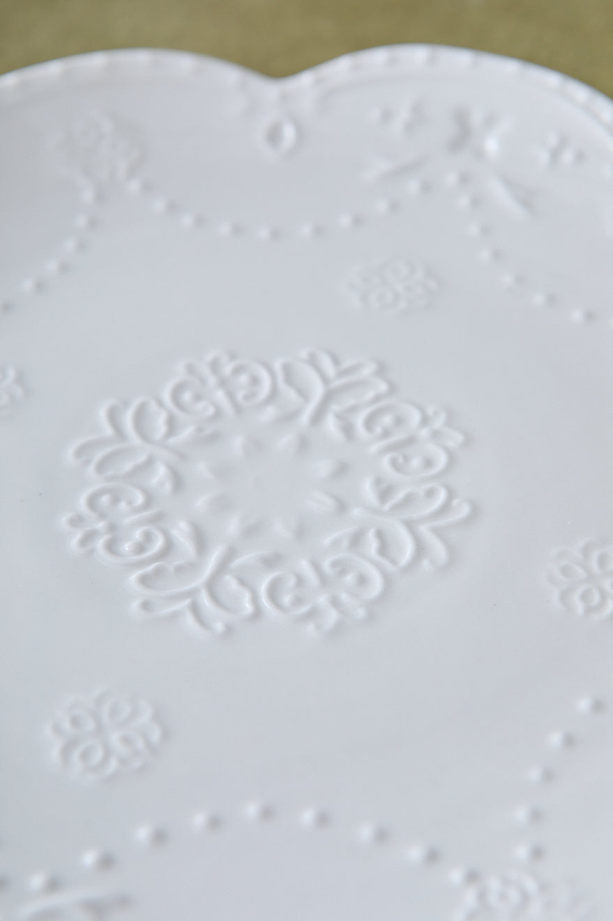 El plato redondo de cerámica blanca Broderie es ideal para postres, desayunos, meriendas o como plato auxiliar. Su borde con textura bordada suma un toque delicado que viste la mesa sin esfuerzo, manteniendo una estética limpia y luminosa.