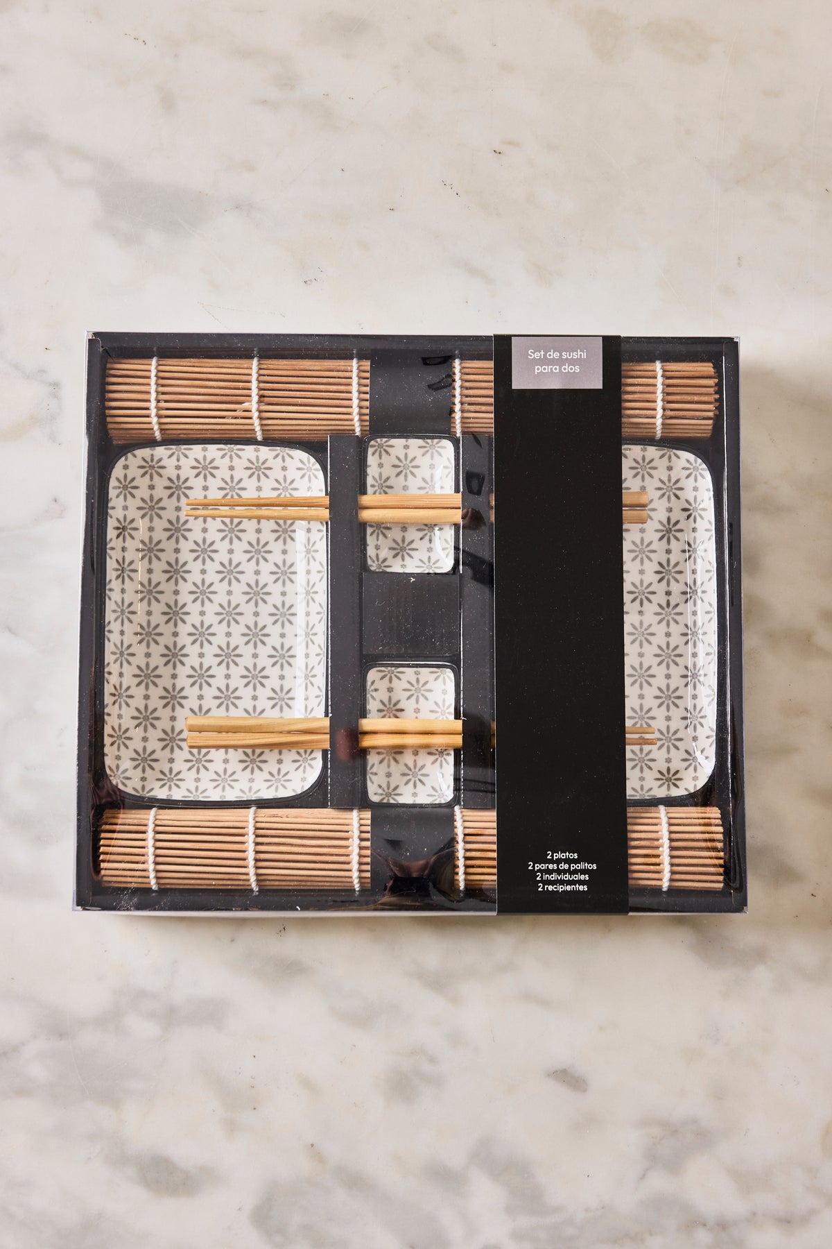 Un formato práctico y elegante para degustar sushi en pareja. Este set rectangular de cerámica aporta estilo y funcionalidad a tu mesa.