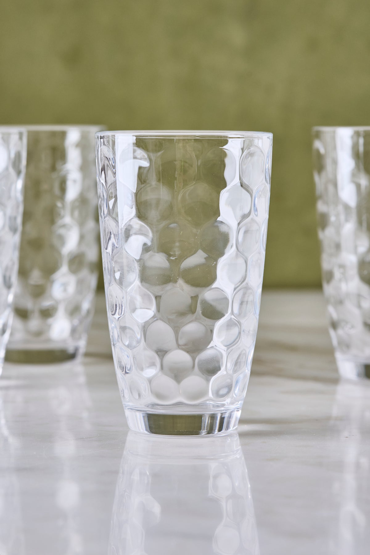 Modernos y resistentes, los vasos altos Sevgilier de 340 ml se adaptan a cualquier bebida: desde agua y jugos hasta cócteles frescos. Un diseño versátil y elegante que realza la mesa en cualquier ocasión.