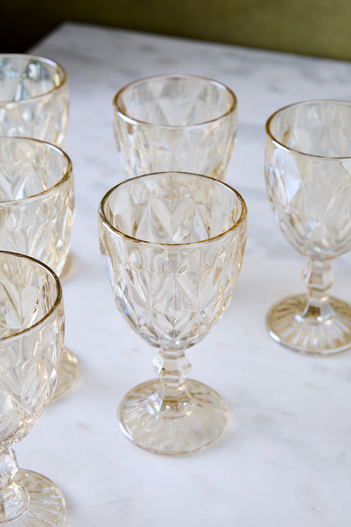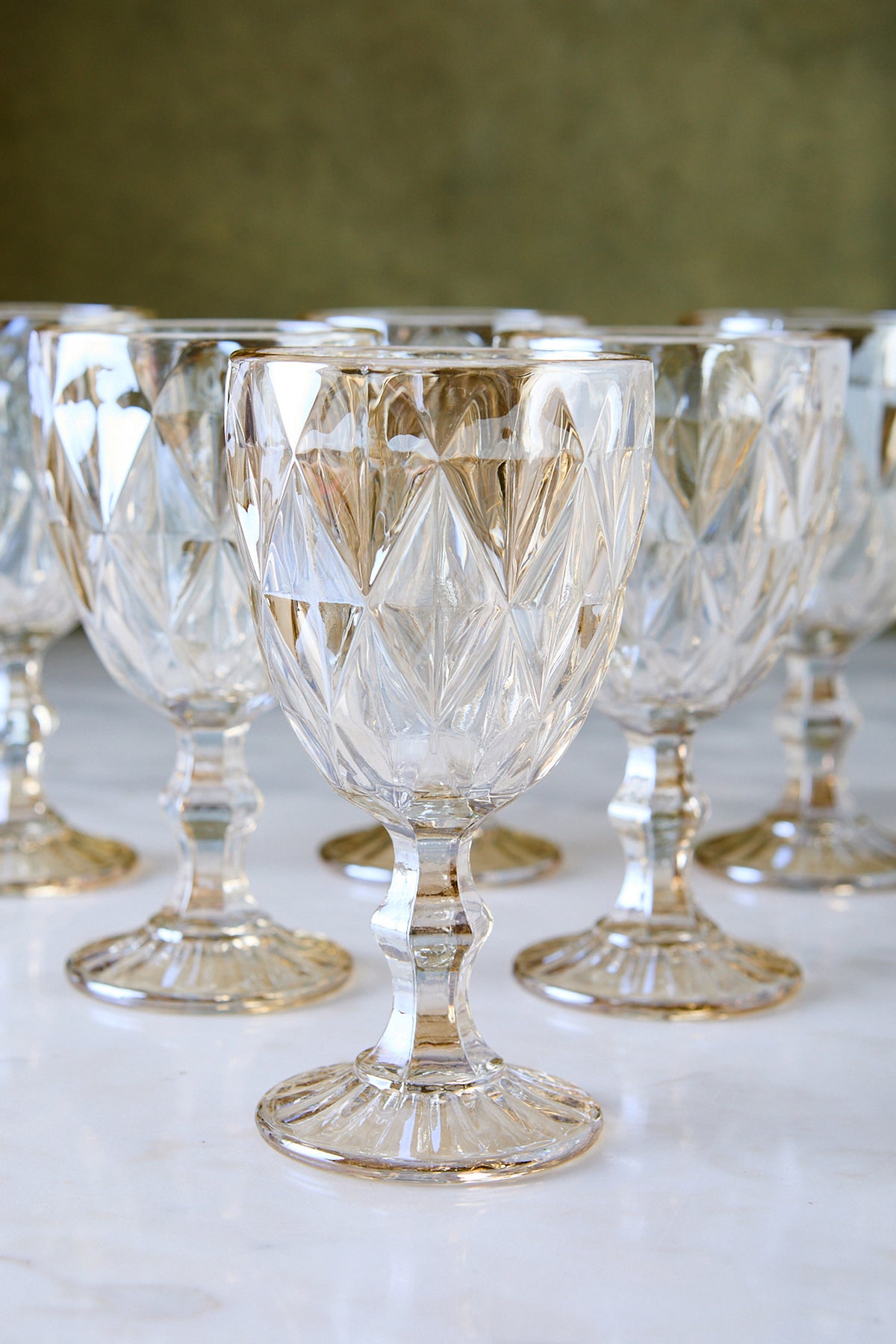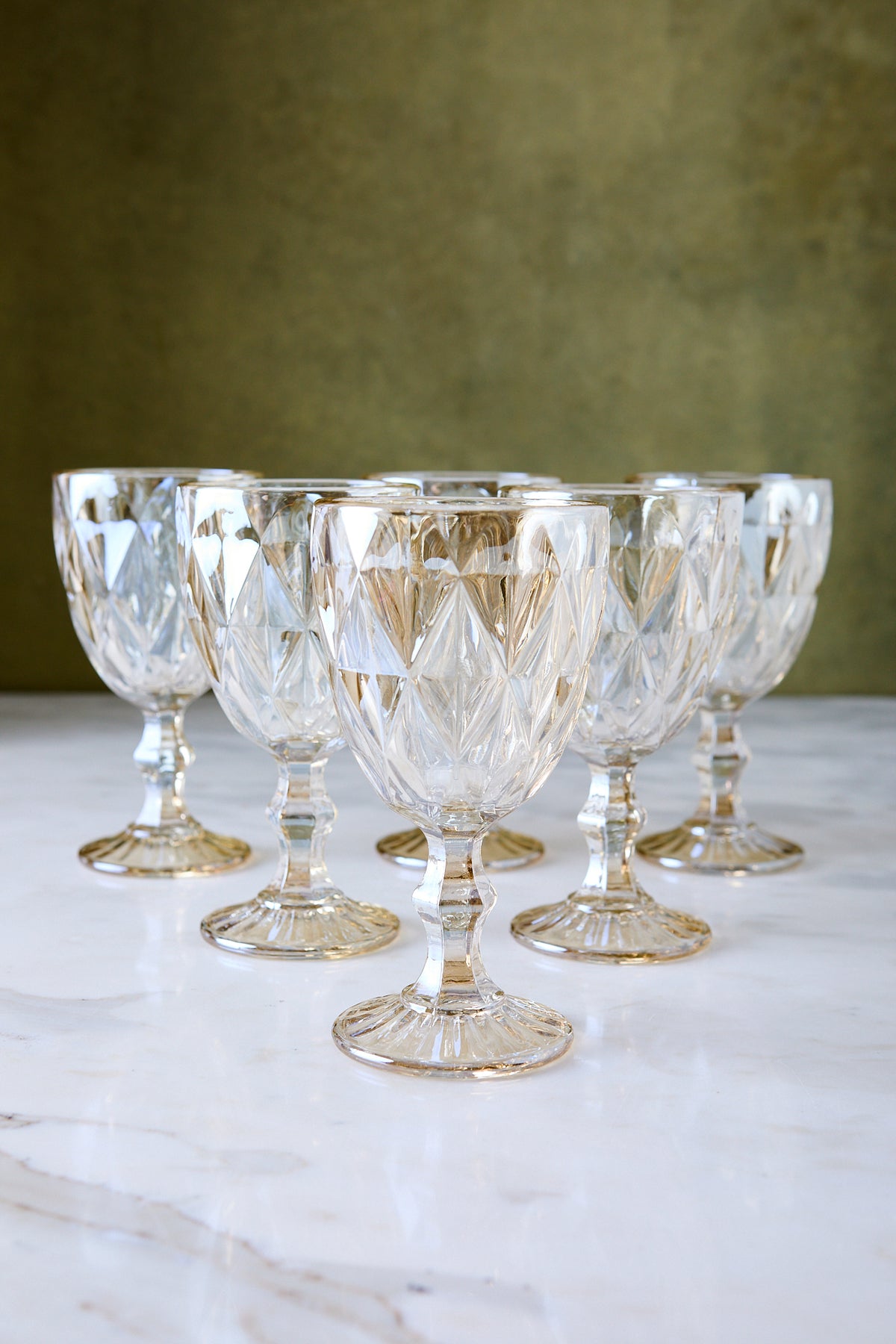 Este set de copas Diamante Champagne de 300 ml realza cualquier brindis con su diseño facetado y brillo delicado. La textura tipo diamante hace que la luz se refleje en cada copa, creando una mesa elegante y sofisticada para celebraciones, cenas especiales o recepciones en casa.
