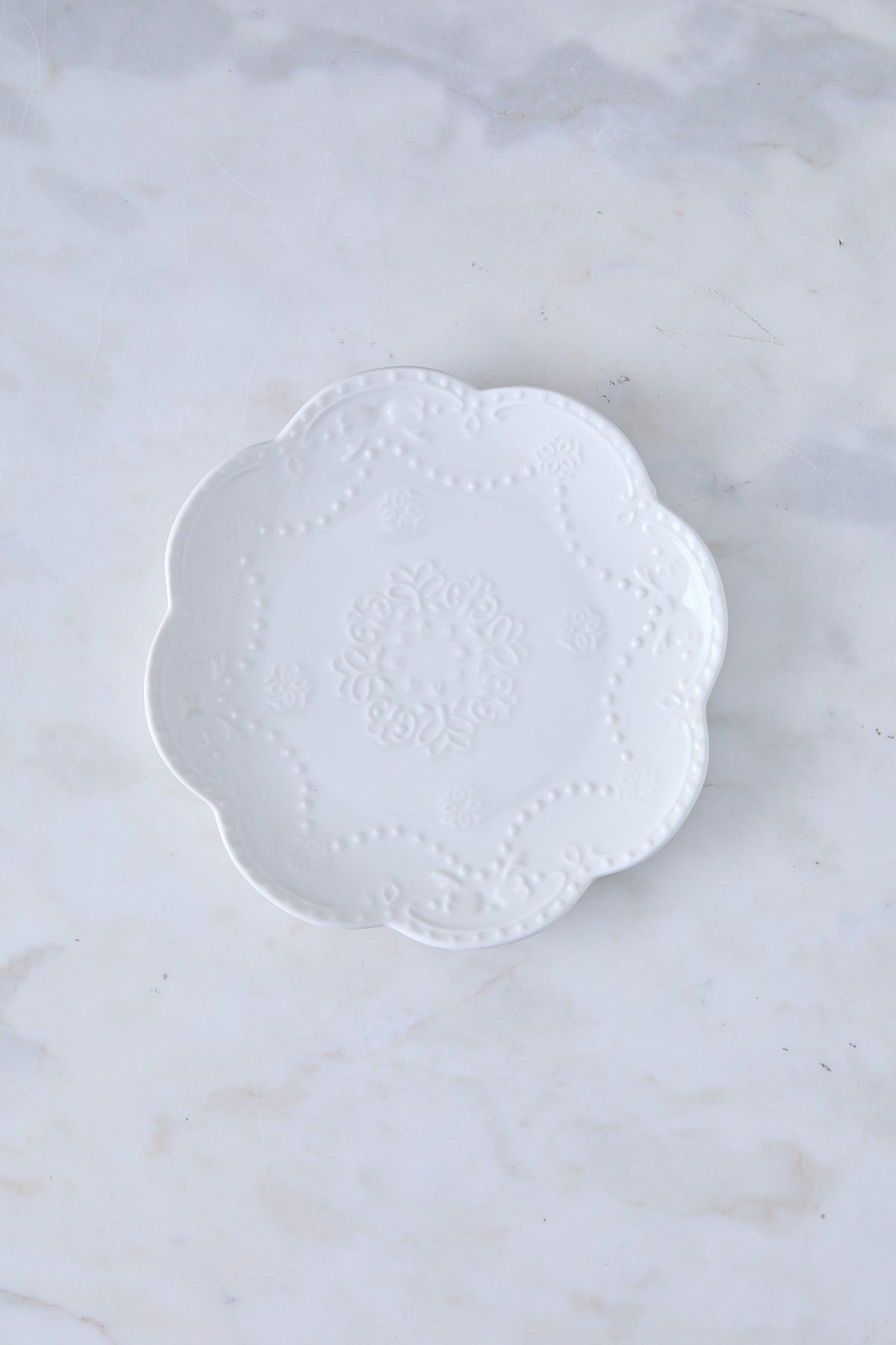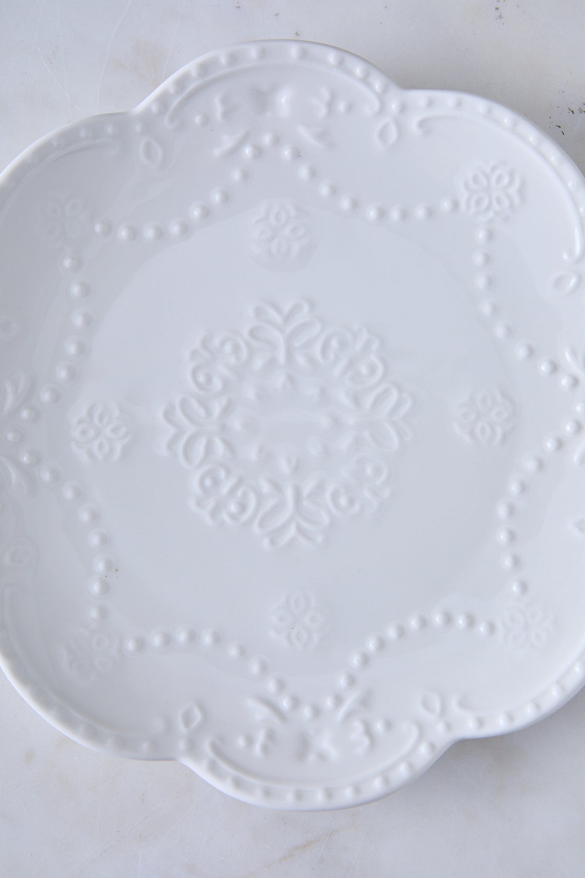 El plato redondo de cerámica blanca Broderie es ideal para postres, desayunos, meriendas o como plato auxiliar. Su borde con textura bordada suma un toque delicado que viste la mesa sin esfuerzo, manteniendo una estética limpia y luminosa.
